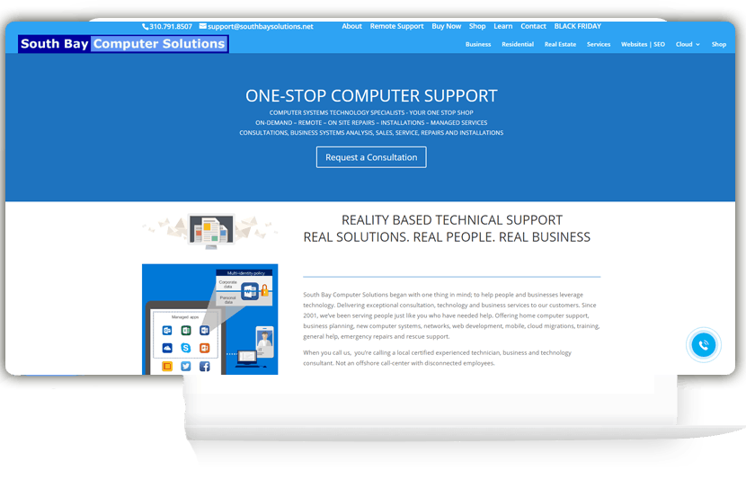 South Bay Computer Solutions began as a Web Development, CAD (Computer Aided Design) and 3-D Modeling service. It grew quickly to meet the large demand for people in residential, real estate, law offices & business whom need help with technology and computer systems. Technical support, consultations, managed services & implementations.