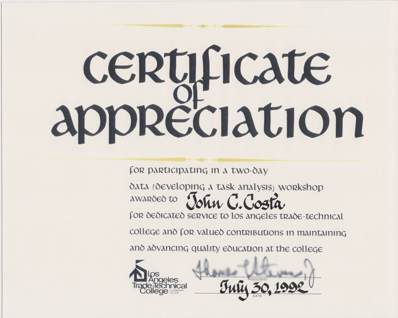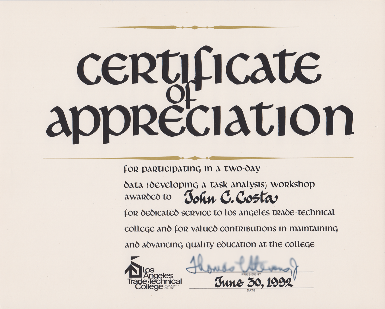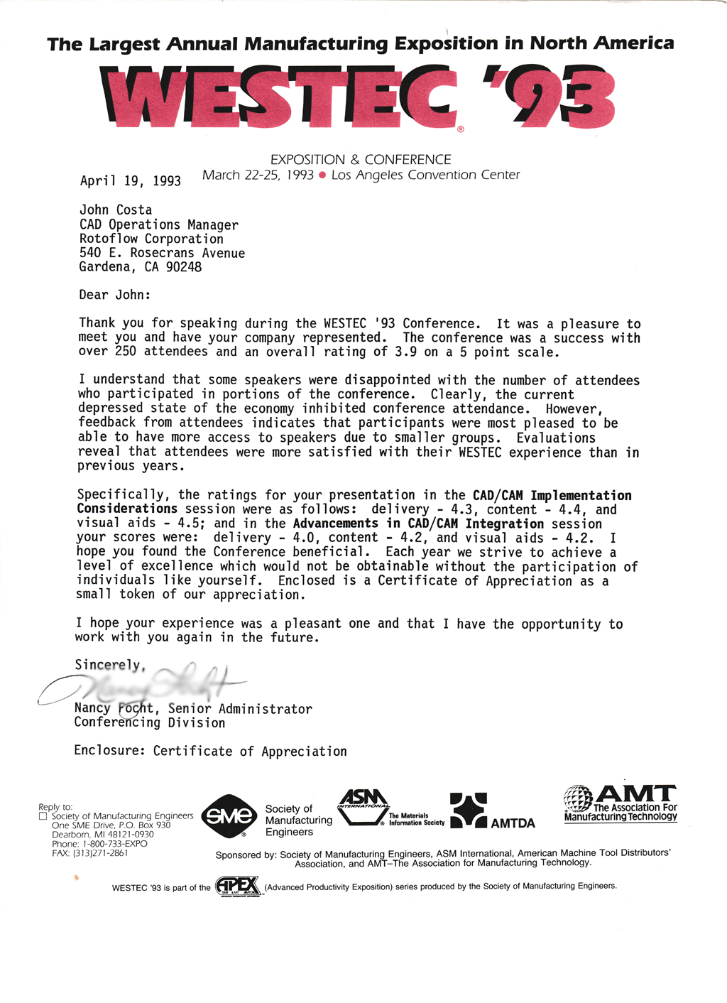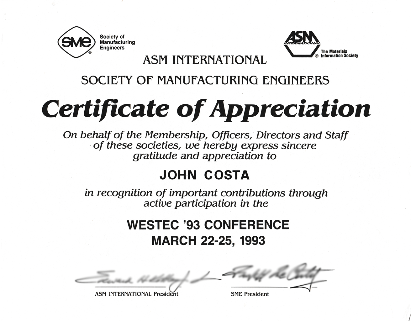 WESTEC EXPOSITION & CONFERENCE Certificate of Appreciation