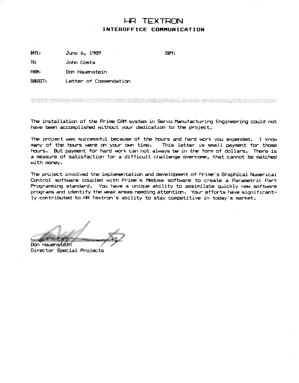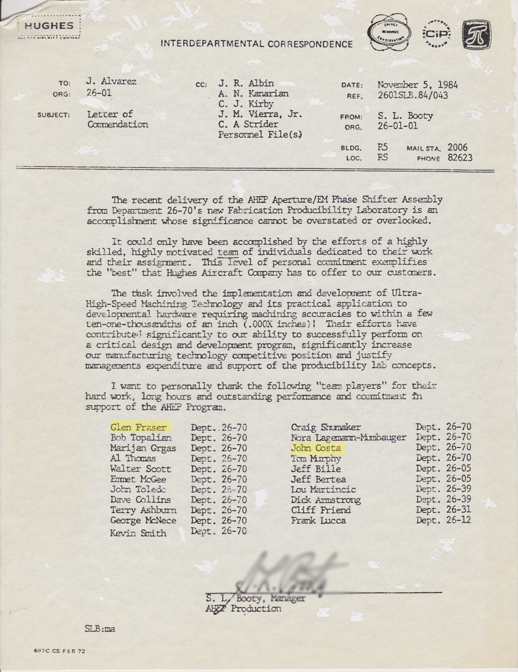 Letter of Commendation – Hughes Aircraft Radar Systems